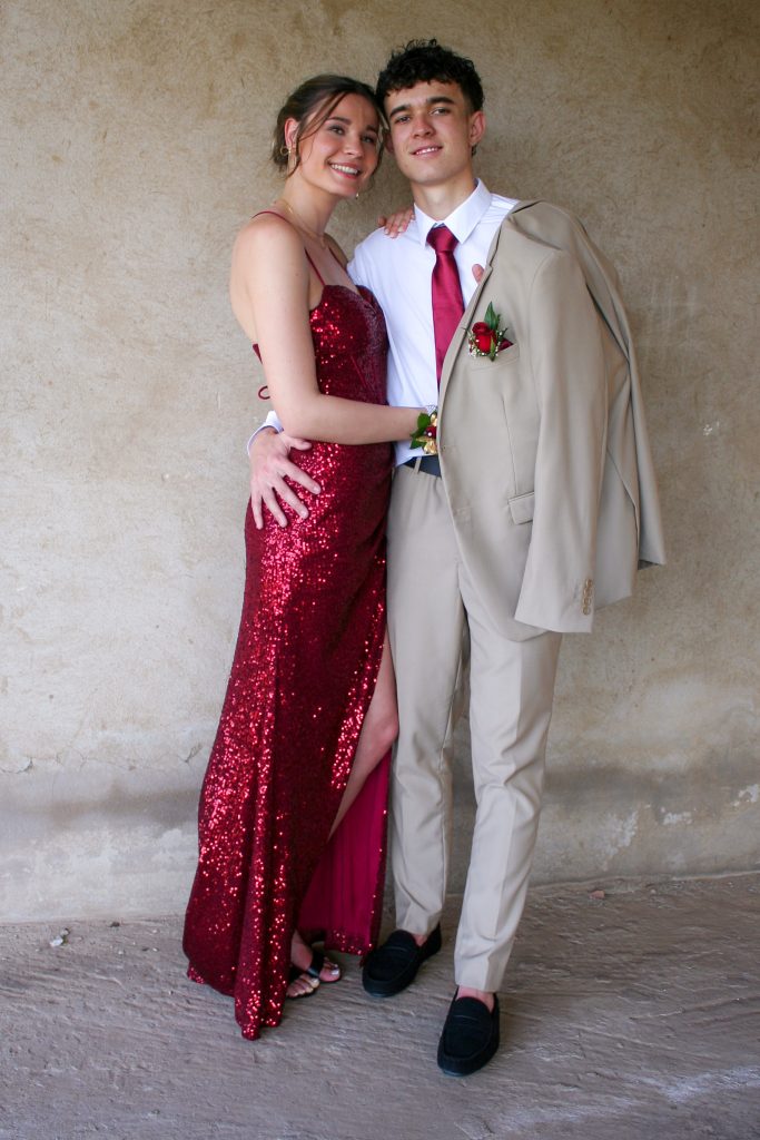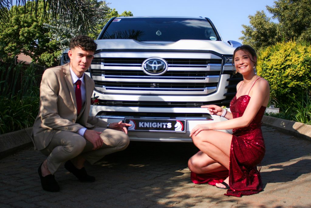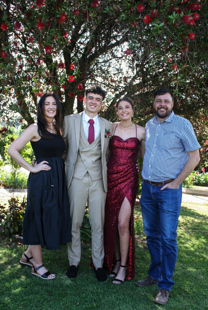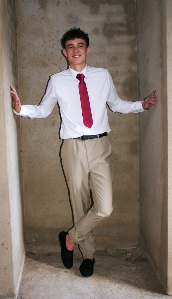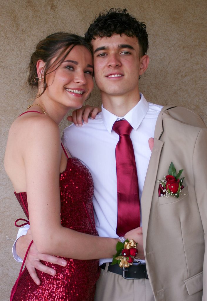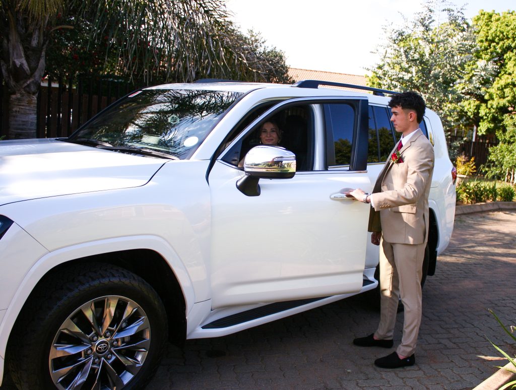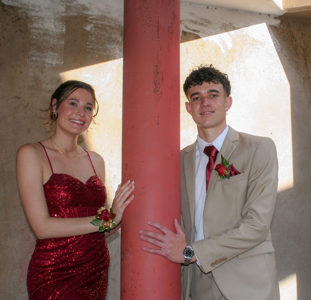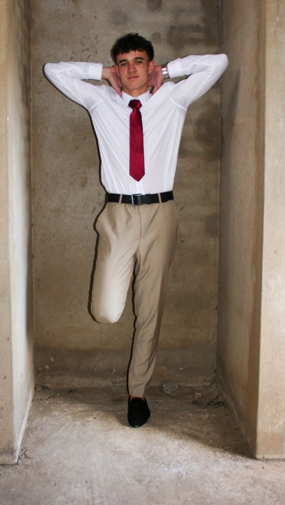 Dylan and Iné from Brandwag High School looked effortlessly elegant for their Matric Farewell. Dylan wore a beige sand suit paired with a crisp white shirt, a bold red tie, and sleek black loafers — a look that was simple, sharp, and full of meaning. The red tie, chosen to match his girlfriend’s dress, tied their looks together beautifully, adding a touch of sentiment to the night.