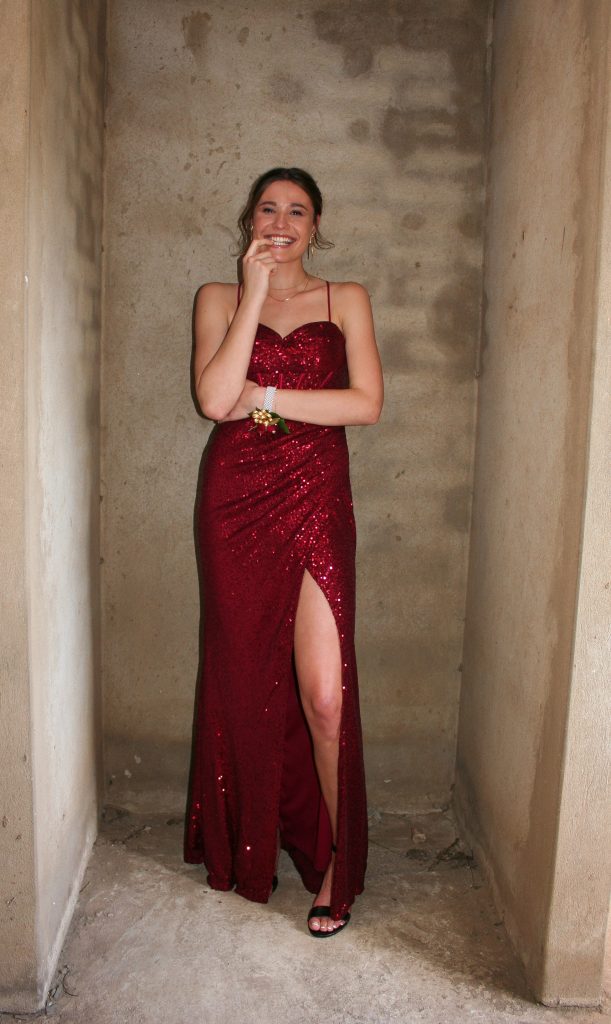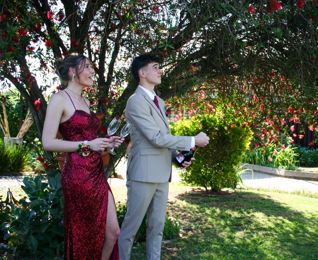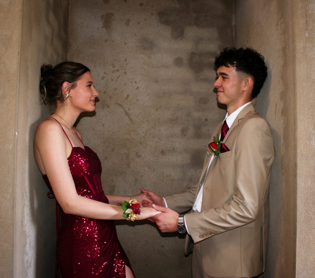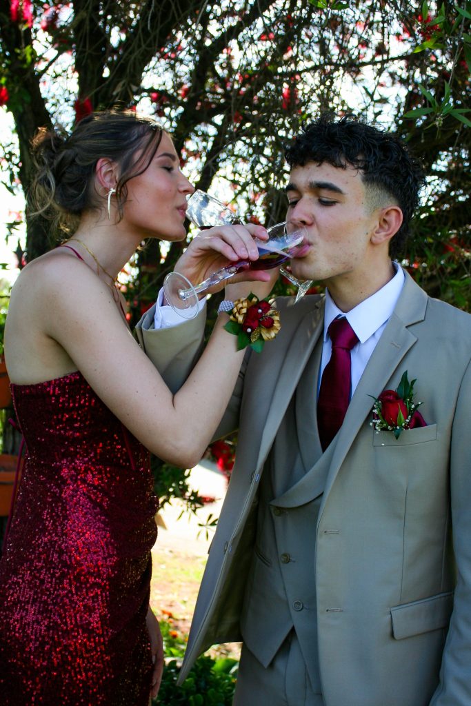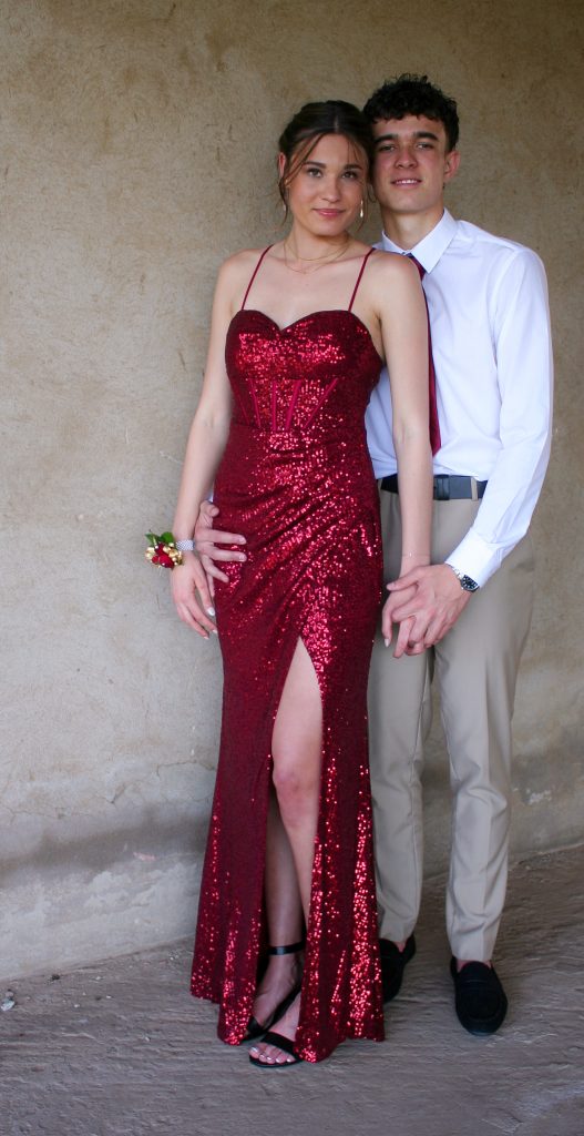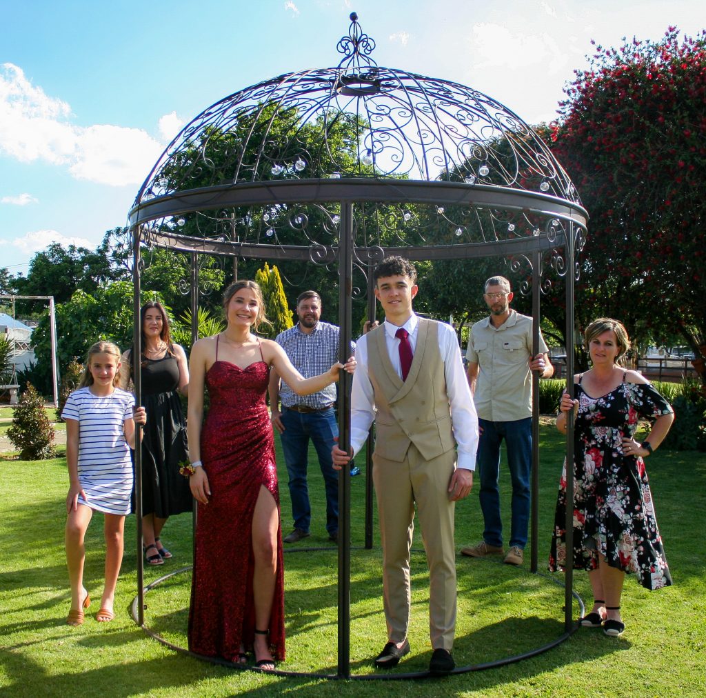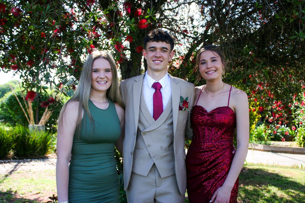 Dylan and Iné from Brandwag High School looked effortlessly elegant for their Matric Farewell. Dylan wore a beige sand suit paired with a crisp white shirt, a bold red tie, and sleek black loafers — a look that was simple, sharp, and full of meaning. The red tie, chosen to match his girlfriend’s dress, tied their looks together beautifully, adding a touch of sentiment to the night.
